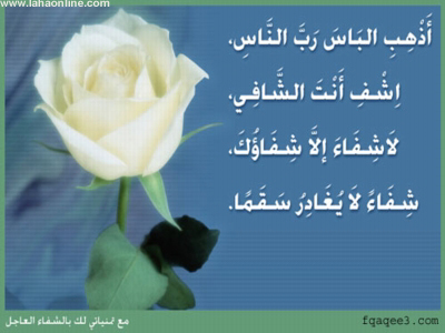 اللهم رب الناس ، مذهب الباس ، اشف أنت الشافي ، لا شافي إلا أنت ، شفاء لا يغادر سقماً